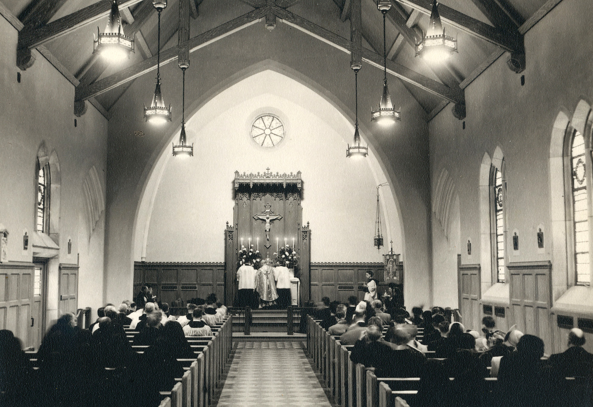 New Sharon, Convent and Infirmary, Rosemont, PA, 1946 - Originally known as Castaña. Photo of first mass in new chapel (celebrated by His Eminence, D. Cardinal Dougherty). |