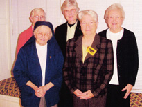 Henze House, Rosemont, PA, 1974 - . Photo of the the community; left to right Frances Gopsill, Margaret Naab, Helena Mayer, Pat Tirrell, Nora Sweeney. |