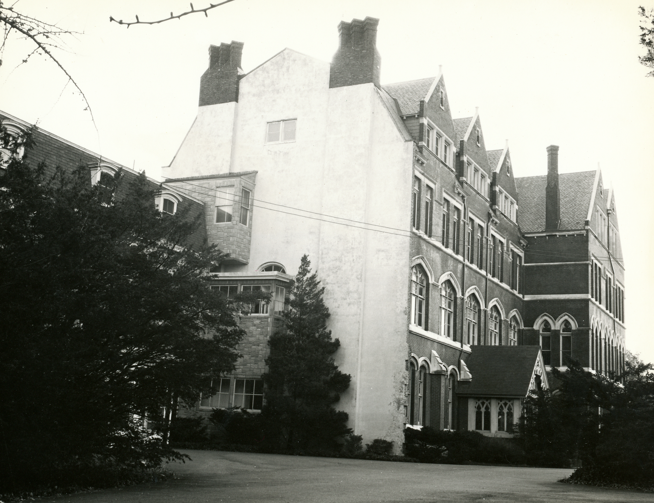 Sharon Convent, Sharon Hill, PA, 1864 - 1974. Photo of chapel on left with old school on right.