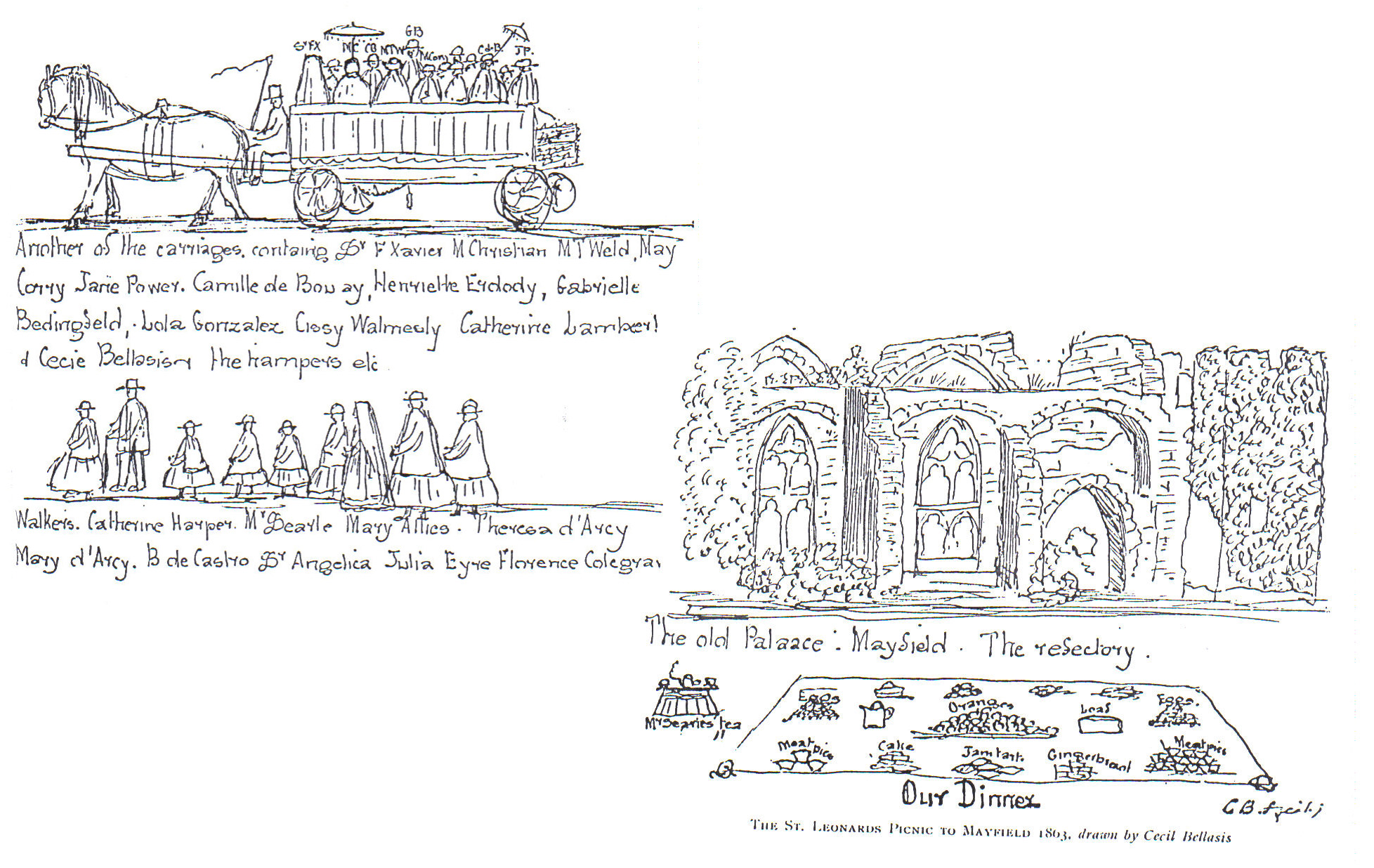 We know all this because one of the students, Ceci Bellasis, who later became a Holy Child sister, produced delightful drawings of the journey and of the picnic.