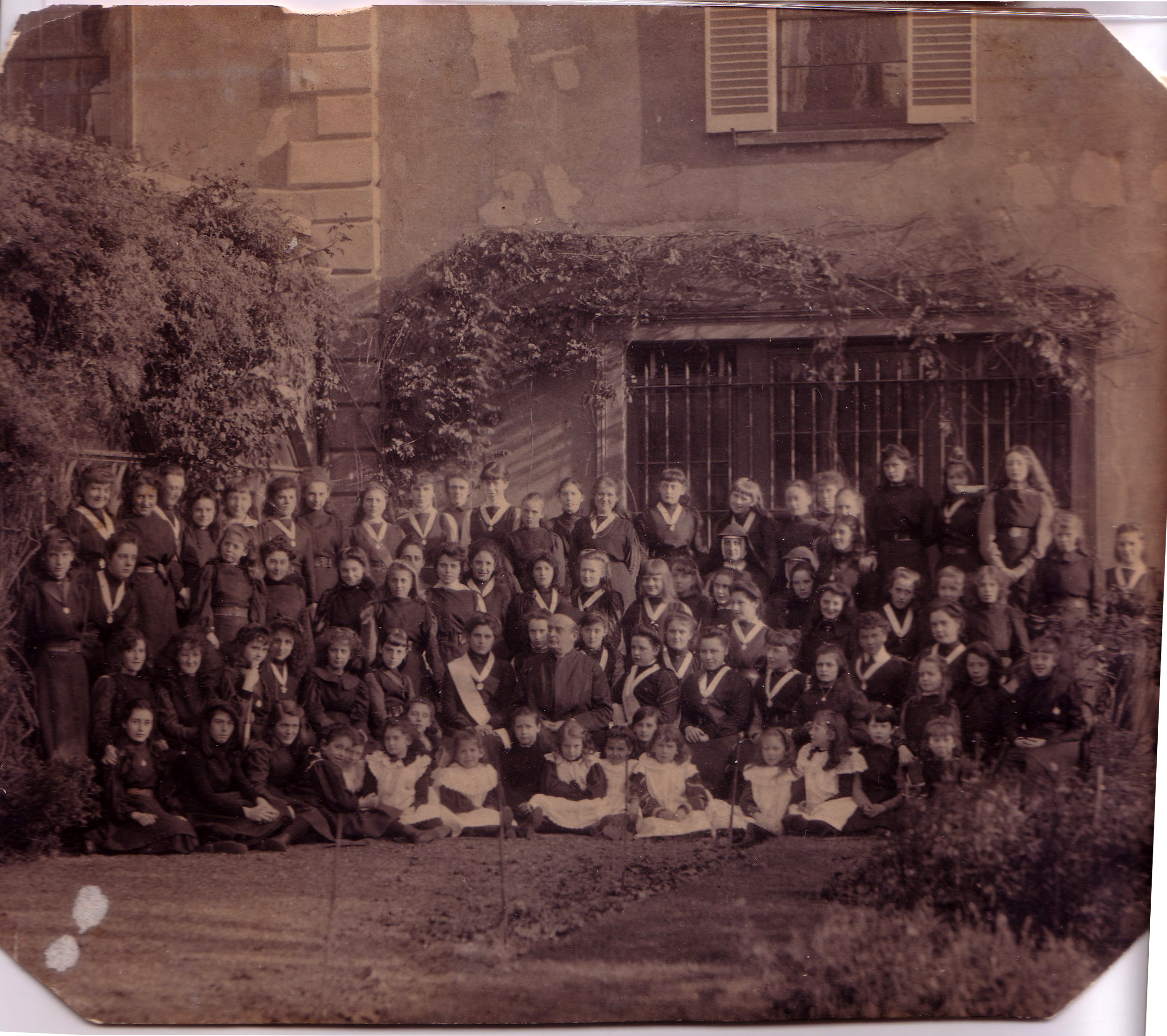 Convent of the Holy Child St. Leonards-on-Sea, England. Photo of Fr. Bernard Vaughan, SJ with the whole school. |