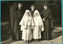 1st grade students with MM Pierre St. Walburga's, W. 104th and (630) Riverside Drive, New York, NY, 1904-1957. Moved to Rye in 1957 and became School of the Holy Child, Rye. Photo of 1st grade students with MM Pierre. |