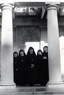 Sisters Under Pergola of Senior School Mayfield Sr. School of the Holy Child Jesus, 500 Bellefontaine Street, Pasadena, CA 1951- present. Photo of sisters under pergola of senior school. |