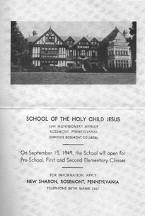 Opening Announcement Rosemont School of the Holy Child, 1344 Montgomery Ave., Rosemont, PA; 1949 - present. Original announcement for the opening of the school. |