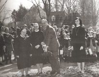 May Crowning 02 Rosemont School of the Holy Child, 1344 Montgomery Ave., Rosemont, PA; 1949 - present. Head of School Sr. Mary Broderick assists during May Crowning. |