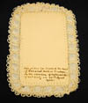 Card touched to Cornelia's head during translation of her body in 1935. See also back of card. |