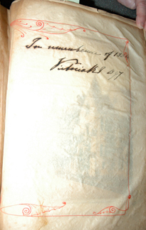 History of the "Olde Palace" 10 St. Leonards - Mayfield, Mayfield, Sussex, England. Originally Mayfield School of the Holy Child. Page of book created by students and teachers; book covers history of the "olde Palace" from the 10th to 19th centuries; wooden cover carved by students; signature of Queen Victoria to commemorate her visit to Mayfield. |