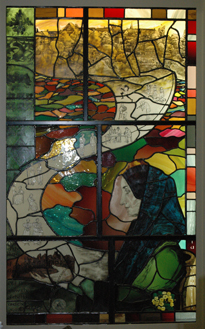 Stained Glass Window St. Leonards - Mayfield, Mayfield, Sussex, England. Originally Mayfield School of the Holy Child. Stained glass window in lobby. |