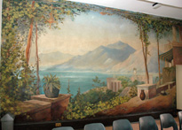 Wall Mural 02 St. Leonards - Mayfield, Mayfield, Sussex, England. Originally Mayfield School of the Holy Child. Wall mural. "Some of the early Holy Child sisters and students of Mayfield painted this scene during the last years of Cornelia Connelly's life as a back drop for school plays." |