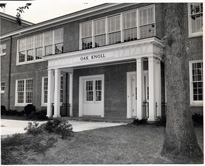 High School and Convent Oak Knoll School of the Holy Child, Blackburn Road, Summit, NJ, 1925 - present. Photo of "high school at left - convent rear right - new addition containing chapel in center - school entrance to chapel." |