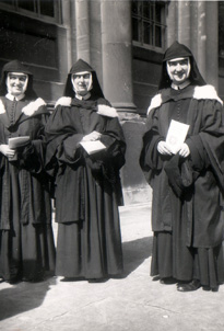 Oxford Graduates 02 Schools and University student centers, Oxford, England. Photo of Oxford graduates Sr. Mary Basil (DOreen Casey), Sr. Mary Baptista (Pamela Hussey) and Sr. Mary Walburga (Mavis Mercer). |